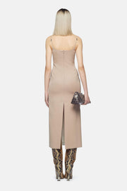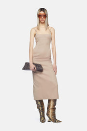 The Midi Dress in Beige by The Attico is a double strap style with logo metal adjusters. With a fitted bodice & back zip closure, this style possesses a timeless silhouette and will become your perfect event dress. Pair this style with either a strappy heel or The Attico's Cheope Tube Boots and bold jewellery.