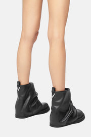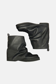 The 'Mini Robin' Boot in Black by The Attico is a bold, slouchy design crafted from soft leather that pools into soft folds at the base. Boasting a cool, layered look, style yours with mini hemlines.