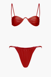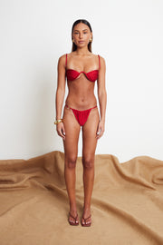 The Minimal Balconette & Brief set by Cultira in Chilli is a summer staple. This elegant design will take you from the beach to beach clubs seamlessly. Crafted from the highest quality eco Italian lycra crafted with body hugging properties, this style is double lined and features Cultira zinc alloy hardware. The balconette has a structural underwire, delicate ruching adorning each cup and adjustable and removable straps.