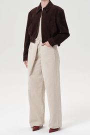 The Nahla Cropped Suede Jacket in Root by Agolde is crafted from ultra-soft, rich brown suede and features a clean, minimal silhouette. The cropped fit and refined collar offer a tailored yet relaxed finish, making it the perfect layering piece for elevated everyday dressing.
