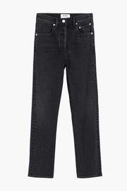 The Riley High Rise Straight Crop Jean in Panoramic by Agolde are a faded black-wash jean with a high waist and cropped straight leg. Crafted from a cotton blend, these jeans offer both stretch and comfort and are finished with a button fly. Offering both simplicity and versatility, wear these jeans with sneakers as your everyday, run-around jean or dress up with heels for a special occasion.