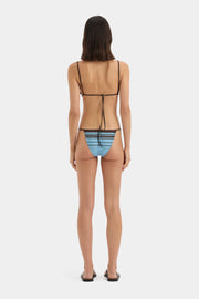 The Rioja String Brief in Pacha Mineral Stripe by SIR is crafted from form-fitting lycra in an exclusive geometric stripe print. Designed to sit low on the hips with a high-cut leg, it features an adjustable side tie and a cluster of beads on the left for a subtle accent. Pair with the matching Rioja String Triangle Top for a complete set.