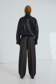 The Robbie Plonge Nappa Leather Jacket in Black by DARKPARK is a refined take on a timeless wardrobe essential. Crafted from leather, this jacket is designed with a high stand collar and oversized gold-tone hardware that adds edge. Cut with slightly dropped shoulders and a cropped length, the Robbie brings modern proportions to a classic leather style. Pair yours with tailored trousers and sharp boots for a sleek, contemporary look.