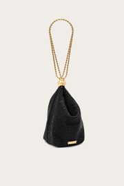 The Rue Wristlet in Black from Cult Gaia is an elegant statement piece, crafted in shimmering black glass beads and finished with refined gold-toned trim. Its twisted chain strap offers a hint of sculptural detail, while the secure zip and snap closure ensure functionality without compromising style.
