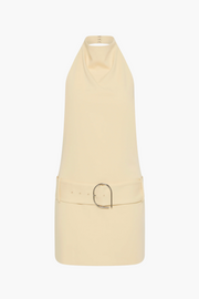 The Sabina Belted Mini Dress in Butter by SIR is an event-ready silhouette crafted from lightweight summer suiting with a smooth handfeel. Featuring a softly draped halter neckline, open back, and removable wide belt, it allows for an adjustable, flattering fit. Pair it with heels and minimal jewellery for an effortless, polished look.