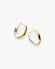 The Savi Signature Large Hoop in Mixed by Missoma feature a distinctive 'S' curve and a two-tone finish. Designed in collaboration with Beijing style icon SAVISLOOK, they can be worn with either the gold or silver side facing forward—offering two looks in one. A bold yet versatile piece, perfect worn solo or layered with studs.