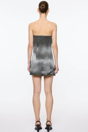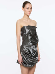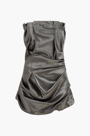 The Scrunch Effect Mini Dress in Gunmetal from Paris Georgia is a striking strapless silhouette, crafted from high-shine heavy satin that sculpts and holds its shape. Featuring structured draping and considered volume, it softly contours the body while creating depth and movement, making it an elevated statement piece. Pair with metallic heels and minimal jewellery to highlight its sculptural design.