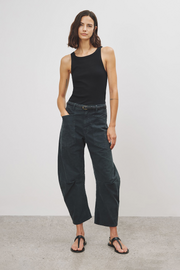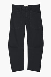 The Nili Lotan Shon Pant in Carbon are crafted from a brushed stretch twill fabrication and are designed for a modern, gently tapered fit. Featuring a uniquely curved silhouette and dropped back pockets, these pants are also complete with button zip fly, front patch pockets and belt loops. Pair with your favourite tee and heeled boots for a cool, everyday look.