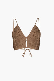 The South Top in Taupe from More Noir blends romantic volume with breezy summer elegance. Crafted from a whisper-light 70% cotton / 30% silk voile, the South top features lined cups, ruched detailing, and ties at the back for a custom fit. Wear with the June Skirt for sunset dinners or mix and match with your existing wardrobe for elevated, warm-weather style. Pair with the matching June Skirt.