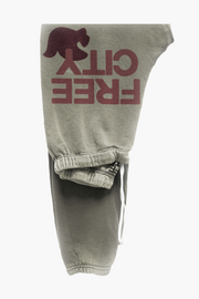 The FreeCity Superfluff Lux OG Sweatpant in Shrooms are a unisex tracksuit pant fabricated from a lightweight mixed fabrication. The Superfluff Lux OG Sweatpant is designed with classic 'FREECITYLARGE' print and dove print down the right leg, finished with an elastic waist with a pull drawstring. Pair with the Superfluff Lux Zip Hoodie and sneakers for a comfortable matching loungewear look.