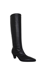 The modernist Tall Boot in Black by Bare Base are made in Italy in the Marche region. Crafted in a supple Nappa leather that is not bonded, instead loose to showcase the slouched silhouette of this boot. The Bare Base Tall Boot is the perfect wardrobe staple and day-to-night boot.