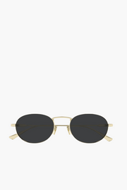 The Thin Metal Frame Sunglasses in gold by Saint Laurent embrace vintage-inspired elegance with these slim metal sunglasses, featuring a lightweight oval frame and a single high bridge for a sleek, minimalist aesthetic. Crafted from thin gold-tone metal, this design is a modern take on classic 90s eyewear, offering both style and comfort. The black lenses provide Category 3 UV protection, making them ideal for everyday wear.
