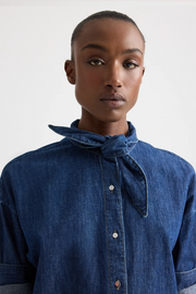 The Tie One On in Dark Stone by TWP is crafted from denim for a structured yet lightweight feel. The design features a high neckline that can be tied for a romantic bow detail or worn open for relaxed flair. A cropped silhouette and wide sleeves complete the look, making it a go-to piece for it’s a versatile staple for elevated casual styling.