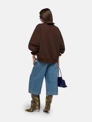 • Oversized v-neck sweatshirt in dark brown fleece