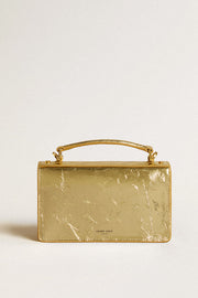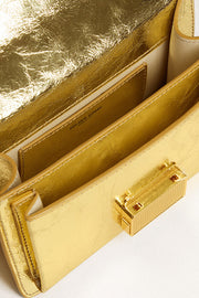 The Venezia Small Bag in Light Gold Metal from Golden Goose is a gleaming homage to Venetian elegance. Crafted from lustrous gold metallic leather, this compact statement piece is finished with gold-tone hardware and a signature buckle closure. Thoughtfully designed with a double interior pocket, card holder, and adjustable shoulder strap, it brings functional beauty to both everyday wear and elevated occasions.