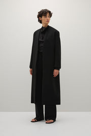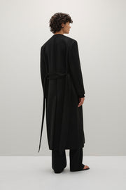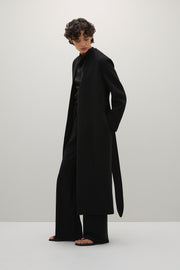 The Veronique Coat in Grey Melange from A.emery is a collarless, fully lined coat crafted from a luxurious wool blend. An elegant take on classic outerwear, designed for a relaxed yet refined fit, it features a belted waist tie for a cinched silhouette, generous side-seam pockets, and a center-back vent for ease of movement. A timeless layering piece for effortless sophistication.