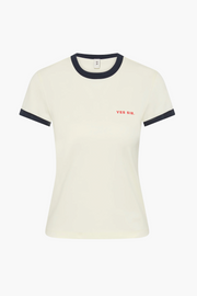 The YES SIR Fitted Tee in Ivory by SIR is an off-duty essential crafted from stretch cotton for a comfortable, contoured fit. Featuring a crew neckline, contrast navy binds, and a subtle YES SIR. logo at the front, it pairs effortlessly with jeans, shorts, or skirts for relaxed, everyday styling.